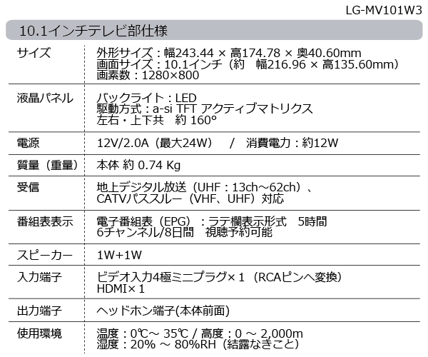 ※旧モデル(MV101W2)の新モデルタイプです。放送受信機能・画素数は同等です。
