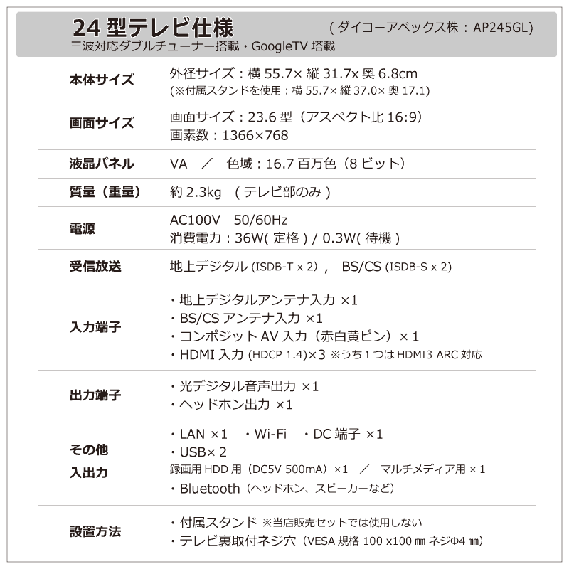 24型テレビ仕様 ※三波対応 (LG-245AP-BRG へ同梱機種)