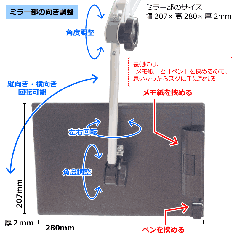 シンプルタイプ:ピタっとアーム式ミラー(鏡)
