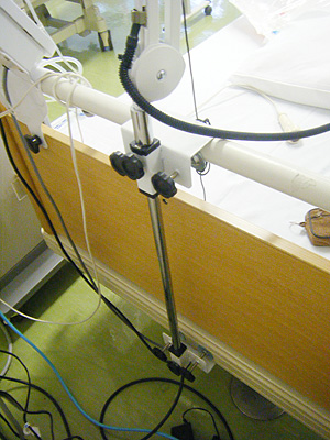 ※取付方法「ベッドホルダー」は上下をクランプで挟み固定している。